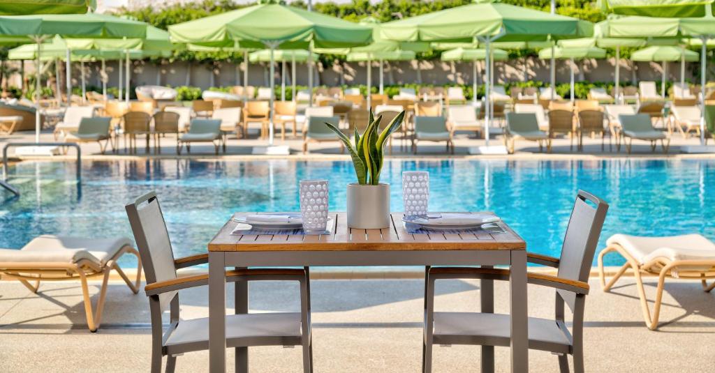 At Papaioannou fine-dining restaurant, guests can indulge in a delicious gastronomy with treasures of the sea and culinary plates accompanied by fine wine and an intimate atmosphere just in front of the sea. At Breakfast the extensive buffet includes a great variety of Greek delicacies as well as European favorites and of course fresh fruits and juices. Casual restaurants include Anemos, with buffets and outdoor seating with views to the pool and sea, the bright and contemporary Atlantis Lounge and A&D bar, both offering light snacks, signature cocktails and live music. Meltemi poolside snack bar offers a shaded seating area that overlooks the pools and is open during the summer period.